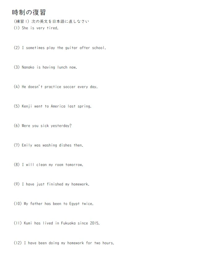 過去・現在・未来と進行形・完了形を確認。